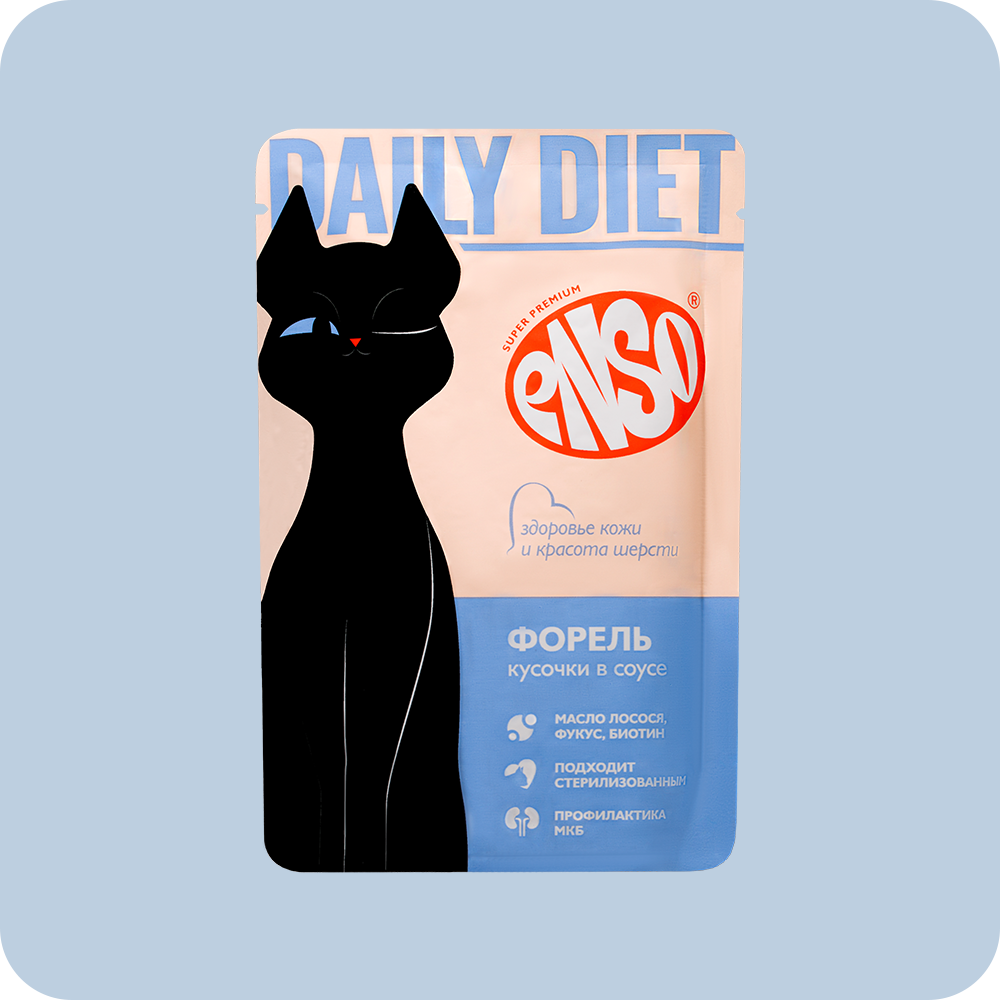 ENSO® DAILY DIET c форелью обогащен необходимыми функциональными добавками для поддержания здоровья кожи и красоты шерсти: